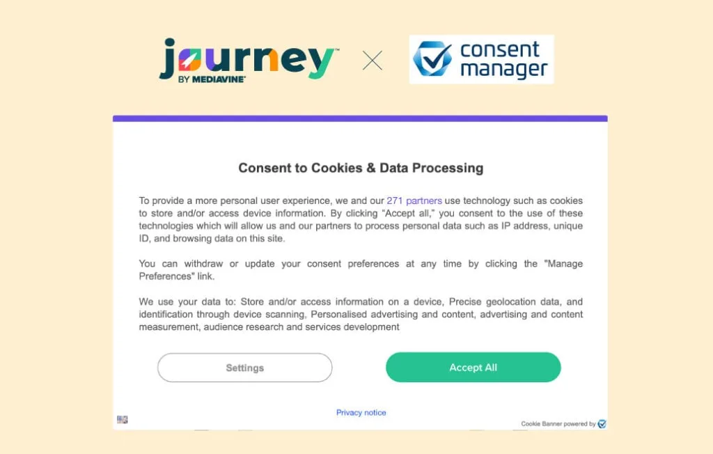 The CONSENTMANAGER partnership helps Journey by Mediavine publishers meet compliance obligations in the evolving privacy landscape.